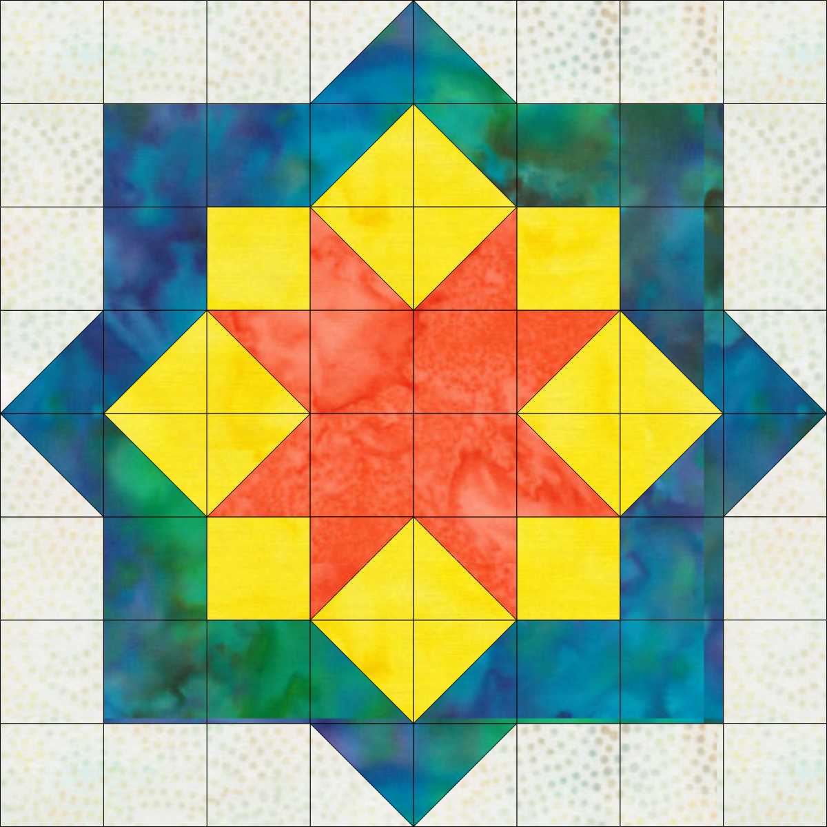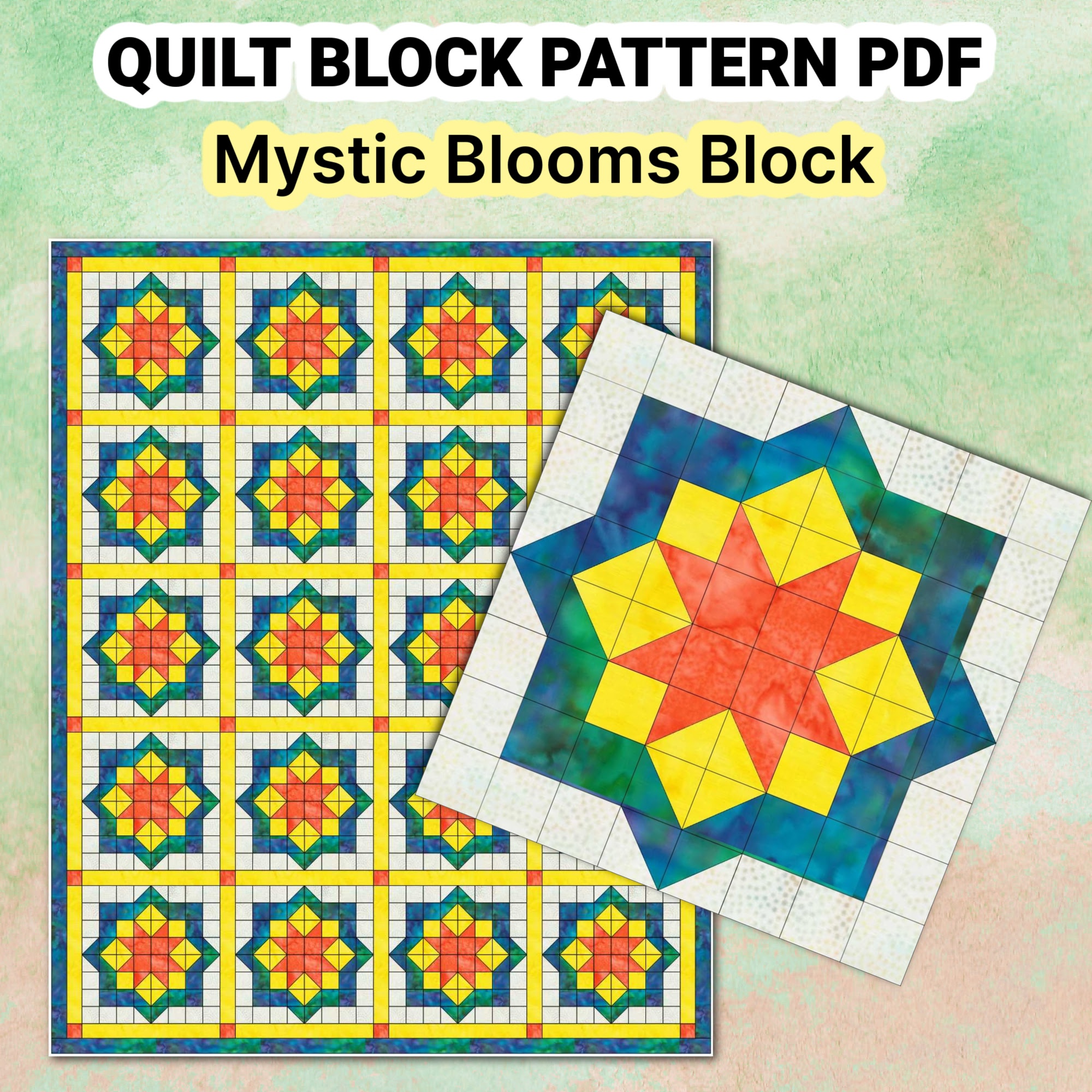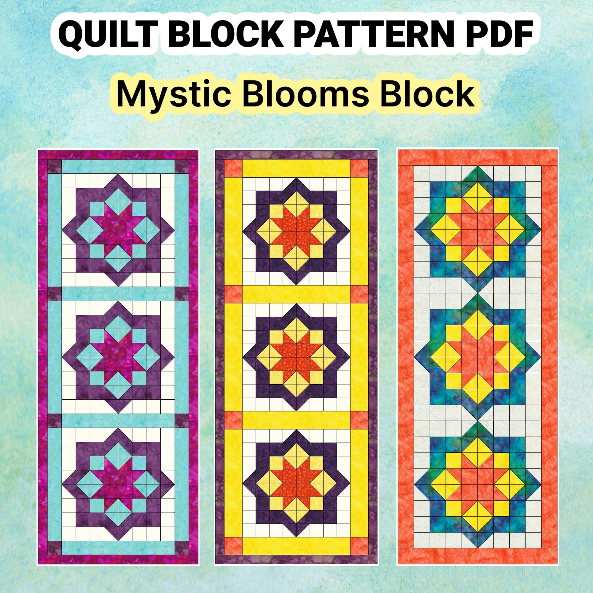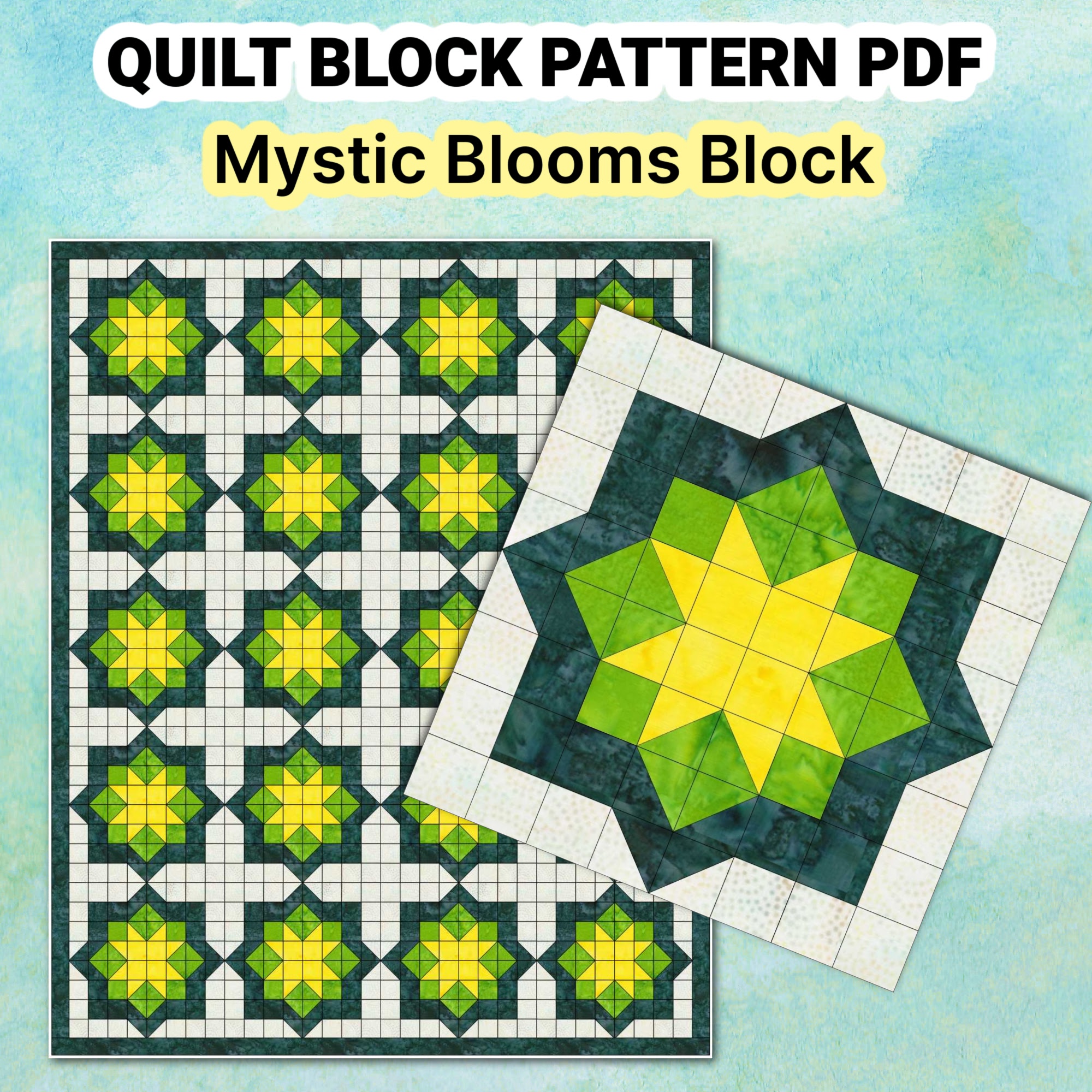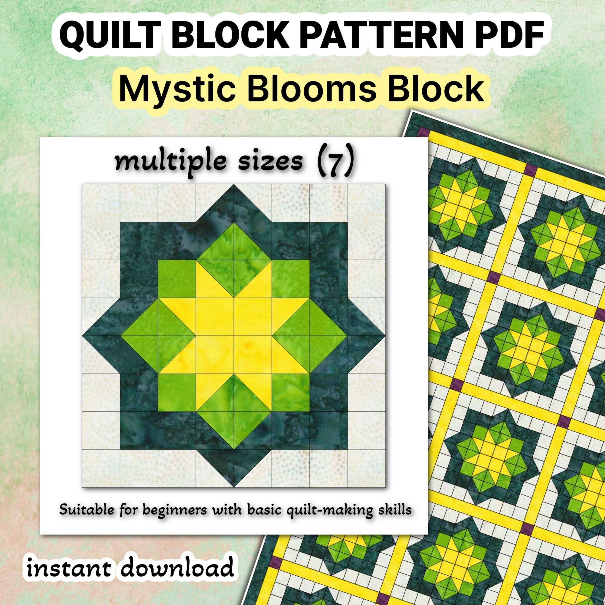 Create a simple beautiful quilt block MYSTIC BLOOMS with this flower quilt block pattern. When joined together, the blocks create a beautiful repeating flower pattern across the quilt.