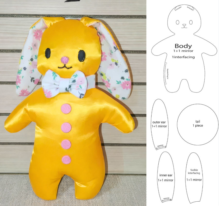 Create a cute bunny toy with this printable PDF sewing pattern. The design features clean curves, embroidered facial details, and optional embellishments like a bow or decorative “buttons”. It makes a thoughtful handmade gift, nursery decoration, or keepsake toy.